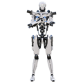 The final version of basic unit had improved upon the other versions. Now, for the chassis, there were layers of protection. The first layer was the rubber, the next was the more durable, yet flexible, plastic, and the upper layer was a basic nanosuit. The suit consisted of slightly modified nanites that formed what appeared to be latex, but the suit could warp and be utilized as a weapon. To help protect a somewhat organic brain with cereborg tech integrated into it, the head had one extra layer of armored protection. By this version, Cerebrum could not find better ways of upgrading the basic function cereborg (BFC) units.